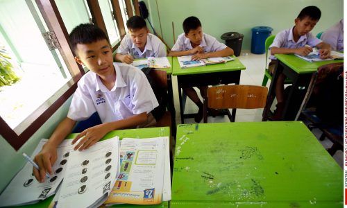Sein Platz ist nun schon fast seit zwei Wochen leer: Der Schreibtisch von Duangpetch Promthep in der Maesaiprasitsart School in Mae Sai. Duangpetch ist einer der zwölf Buben einer Fußballmannschaft, die noch immer in einer Höhle festsitzen. Die Bergung des Teams wird zu einem Wettlauf gegen die Zeit