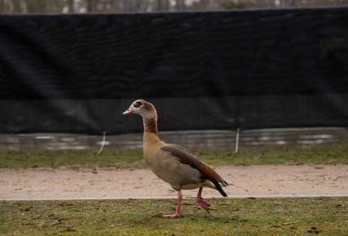 Zaun gegen GansEine Nilgans geht in Frankfurt am Main am Sichtschutzzaun entlang. Die Mainmetropole hat dem Federvieh den Kampf angesagt. Ziel ist es, die Gänse aus den städtischen Parks zu vertreiben und so ihren Bestand zu verringern. Als erste Maßnahme wurde ein Sichtschutzzaun aufgestellt, um di