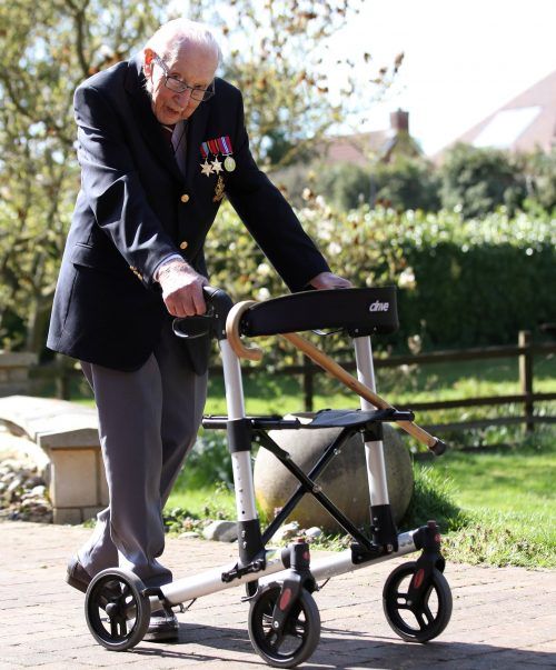 Prinz Harry hat den 99-jährigen Kriegsveteranen Tom Moore für die Unterstützung des britischen Gesundheitswesens gelobt. Der Senior hat inzwischen nahezu Kultstatus im Vereinigten Königreich. Er absolvierte 100 Runden mit dem Rollator durch seinen Garten im englischen Dorf Marston Moretaine und samm