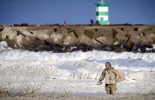 Scheveningen – Der Wind peitscht die Wellen hoch an der Kade vom Hafen von Scheveningen. Die schwarzen Basaltbrocken, der Strand, Fahrzeuge von Feuerwehr und Seenotrettung sind bedeckt von schmutzig-gelbem Schaum. Nach stundenlanger Suche haben die Rettungskräfte soeben den vierten Toten aus der Nor
