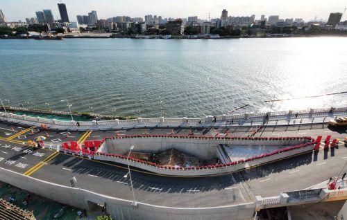 Städtebau auf Chinesisch: Die Besitzerin des jetzt von einer Autobahn umbauten Häuschens in der Metropole Guangzhou hatte sich geweigert, für das Projekt Haizhuyong-Brücke Platz zu machen, wie sie einem Fernsehsender erzählte. Die Entschädigung, die ihr geboten worden sei, habe sie nicht zufriedenge