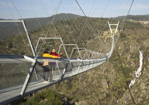Diese Brücke ist nichts für schwache Nerven: In Arouca in Portugal wurde gestern die längste Fußgänger-Hängebrücke der Welt eröffnet. Die „516 Arouca“ im Norden des Landes führt in einer Höhe von 175 Metern über die steile Schlucht des Flusses Paiva. Besucher sollten also schwindelfrei sein.