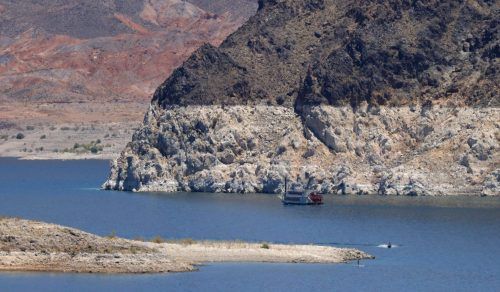 Die Ränder an den Felsen machen das Ausmaß deutlich: Der Lake Mead, der größte Stausee der USA, ist auf ein Rekordtief gesunken. Der Lake Mead ist in den 1930er-Jahren durch den Bau des Hoover-Damms entstanden. Er liegt rund 50 Kilometer südöstlich von Las Vegas. Der Stausee des Colorado Rivers stel