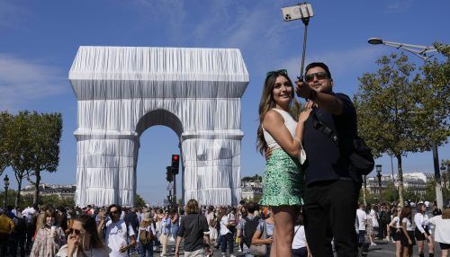Tausende von Parisern und Touristen haben sich am Wochenende ein Bild vom nun vollständig verhüllten Triumphbogen gemacht. Bis zum 3. Oktober heben 25 000 Quadratmeter silbrig-bläulicher Stoff und 3000 Meter lange rote Seile die Architektur des historischen Monuments hervor.