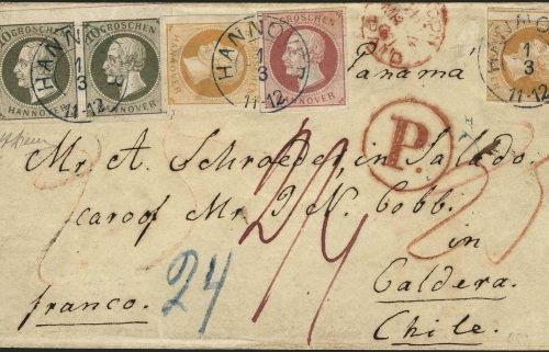Wiesbaden/Hannover – Ein einmaliger Brief ist bei der Versteigerung der Briefmarkensammlung des früheren Tengelmann-Chefs Erivan Haub für 145 000 Euro in Wiesbaden unter den Hammer gekommen. Es handelt sich um einen Auslandsbrief, der 1861 von Hannover aus nach Chile geschickt wurde – das Startgebot
