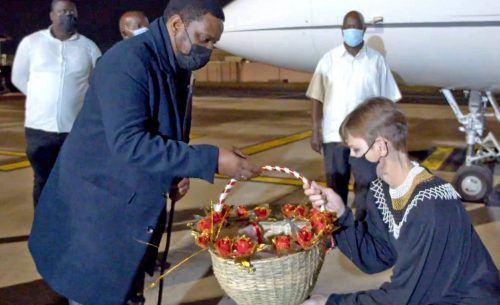 Johannesburg – Schlichtes dunkles Kleid mit Zulu-Perlenbesatz, blonde Bubi-Frisur und dunkler Mundschutz: So verabschiedete sich Fürstin Charlène von Monaco am Sonntagabend von Südafrika, wo sie nach gesundheitlichen Problemen monatelang festsaß. „Es war eine herausfordernde Zeit hier, aber zugleich