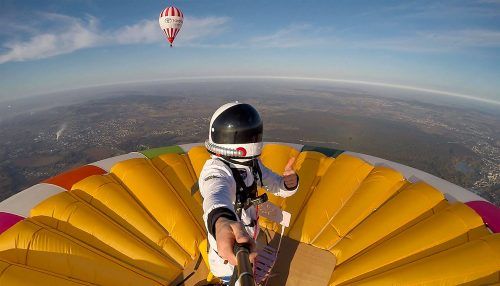 Für einen guten Zweck hat ein 28-jähriger Franzose einen waghalsigen Weltrekord aufgestellt: Auf der Spitze eines Heißluftballons stehend erreichte Rémi Ouvrard eine Höhe von insgesamt 4016 Metern. Gesteuert wurde der Ballon von seinem Vater, der bei einer Höhe von 3500 Metern wegen der rasch abnehm