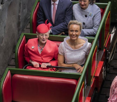 Mit einer Fahrt in einer alten Achterbahn hat Königin Margrethe II. ein halbes Jahrhundert auf dem dänischen Thron gefeiert. Gemeinsam mit der Chefin des Kopenhagener Freizeitparks Tivoli, Susanne Mørch Koch, und anderen Gästen schoss die Monarchin mit viel Tempo durch die Kurven. Zuvor war sie mit