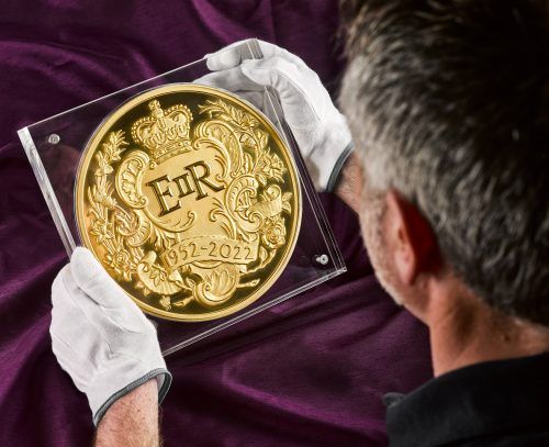 Llantrisant – Mit ihrer größten je hergestellten Münze würdigt die britische Münzprägeanstalt Royal Mint das 70. Thronjubiläum von Queen Elizabeth II. im Juni. Die 15 Kilogramm schwere Münze hat einen nominellen Wert von 17 600 Euro und einen Durchmesser von 220 Millimetern. Sie sei von einem privat