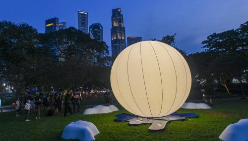 Ein leuchtender Mond strahlt in Singapur – allerdings nicht am Himmel über der Stadt, sondern ganz bodenständig in einer Grünanlage des bekannten Esplanade Parks. Die Lichtinstallation ist ein Kunstwerk, das im Rahmen des Lichterfestivals „i Light Singapore“ ab heute ausgestellt wird. Asiens führe