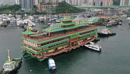 Peking – Hongkongs legendäres schwimmendes Jumbo-Restaurant ist eine Woche, nachdem es aus der Stadt geschleppt wurde, im Südchinesischen Meer gekentert. In das Schiff drang Wasser ein und es sank, verletzt wurde niemand
