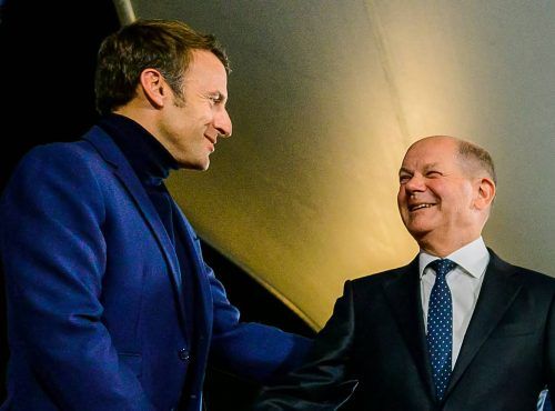 Präsident Macron im Rollkragenpulli zum Dinner bei Scholz