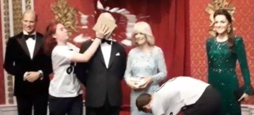 London – Zwei Umweltaktivisten haben Torten auf die Wachsfigur von König Charles III. im Londoner Madame Tussauds geworfen. Nach der Protestaktion am Montagvormittag seien die beiden sowie zwei weitere Menschen wegen Sachbeschädigung festgenommen worden, teilte die Polizei mit.