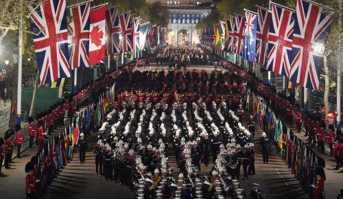 Trotz des Zwischenfalls am Buckingham-Palast vom Dienstagabend haben in der Nacht zum Mittwoch aufwendige Proben für die Krönungsprozession stattgefunden. Ein Mann hatte am Abend Gegenstände – mutmaßlich Schrotpatronen – über den Zaun des Palasts geworfen, konnte aber schnell festgenommen werden (Me