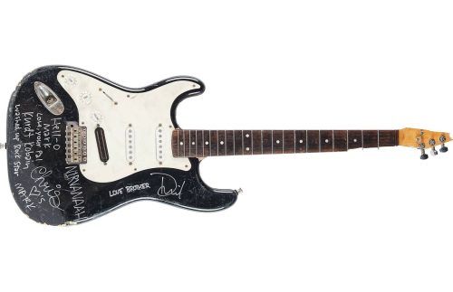 Eine zerschmetterte Gitarre des früheren Nirvana-Frontmanns Kurt Cobain (1967– 1994) ist in New York für knapp 60 0000 US-Dollar (rund 55 0000 Euro) versteigert worden. Der Schätzwert hatte bei 80 000 Dollar gelegen, wie das Auktionshaus Julien’s am Samstag mitteilte. Demnach hatte Cobain die schwar