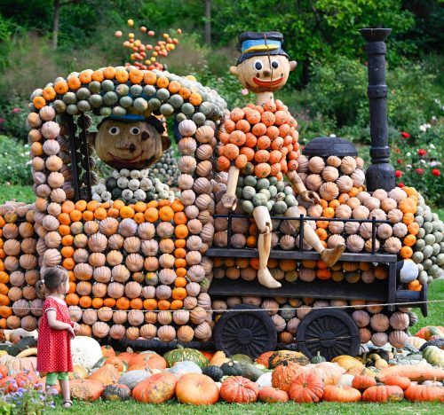 Kürbisse, so weit das Auge reicht: Auf der wohl größten Kürbisausstellung der Welt werden auch in diesem Jahr in Ludwigsburg rund 450 000 Exemplare des Fruchtgemüses in Szene gesetzt. Hunderte Sorten wie bunte Zierkürbisse oder leuchtende Schnitzkürbisse werden traditionell zu Figuren und Szenen r
