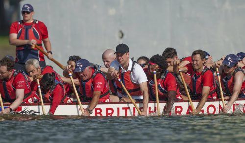 „Naturtalent“ Prinz William hat seine Mannschaft bei einem Drachenbootrennen in Singapur zum Sieg geführt. Der 41-Jährige habe keinen einzigen Schlag verpasst, lobte Teamkapitän Chris Bosher. Im weißen Poloshirt unter der Schwimmweste und mit schwarzer Kappe stach der britische Thronfolger aus der a