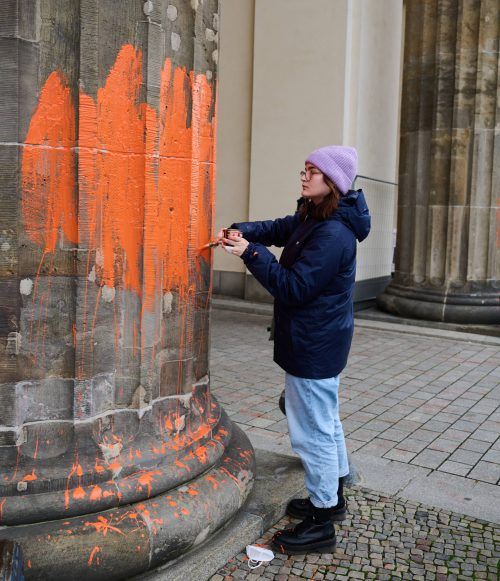 Berlin – Klima-Aktivisten haben gestern erneut das Brandenburger Tor mit oranger Farbe beschmiert. Wie die Gruppe Letzte Generation mitteilte, färbten Mitglieder mit Pinseln Säulen auf der Westseite des Bauwerks ein.