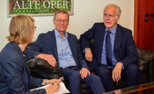 Pia Rolfs im Gespräch mit Prof. Ulrich Hegerl (Mi.) und Harald Schmidt. © Rainer Rueffer