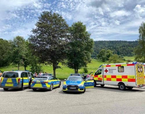Albstadt – Dutzende Streifenwagen rasen mit hohem Tempo über die Bundesstraße in Richtung A