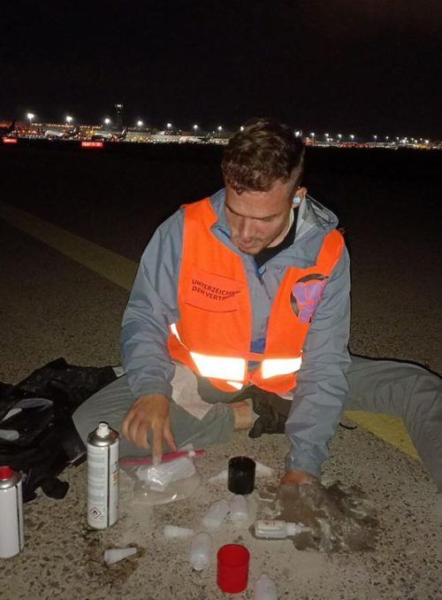Einer der Aktivisten auf dem Rollfeld. © Letzte Generation/epa
