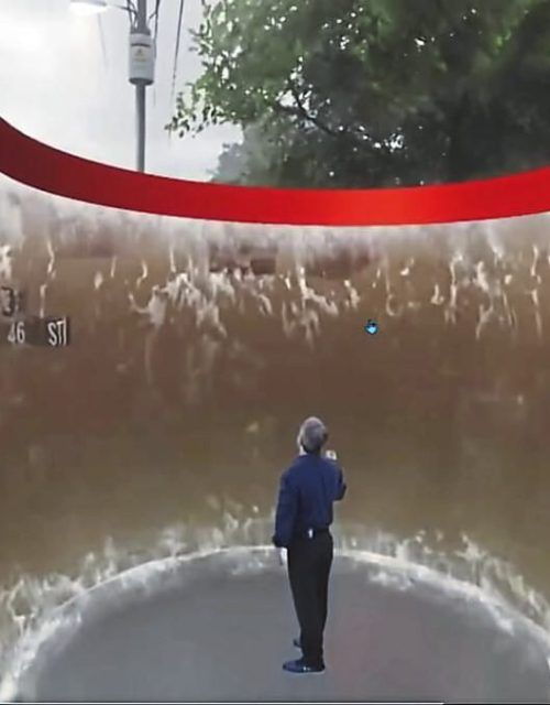 Extreme Winde, Überflutungen und Unmengen an Regen: Die Menschen in Florida zittern vor Horror-Hurrikan „Milton“. Im US-Fernsehen visualisierte ein Moderator, wie hoch die Überschwemmungen werden könnten: mehr als zweieinhalb Meter (li.). Millionen Menschen wurden aufgefordert, sich in Sicherheit zu
