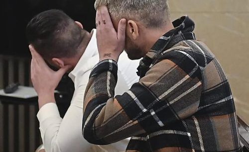 Die Angeklagten vor Gericht: Schuldbewusst wenden sie sich während der ersten Prozesstage von den anwesenden Fotografen ab. © EPA/BORRAS