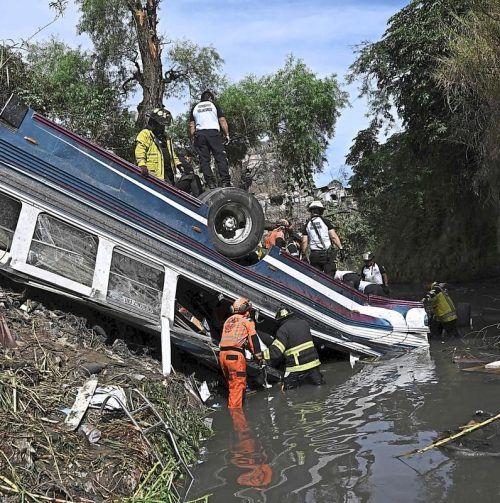 Guatemala-Stadt – Bei einem Busunfall in Guatemala sind nach Behördenangaben mindestens 55 Menschen ums Leben gekommen. Der Reisebus war in Richtung Guatemala-Stadt unterwegs, als er bereits in der Hauptstadt von einer Brücke rund 20 Meter in die Tiefe
