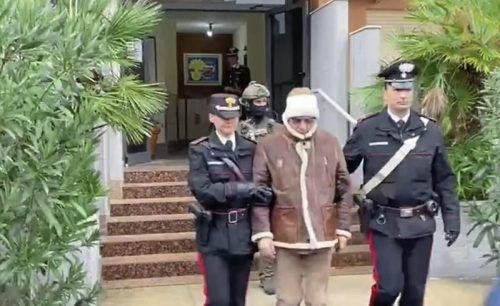 Mafia-Superboss Matteo Messina Denaro bei seiner Festnahme im Januar 2023. © Carabinieri/epa