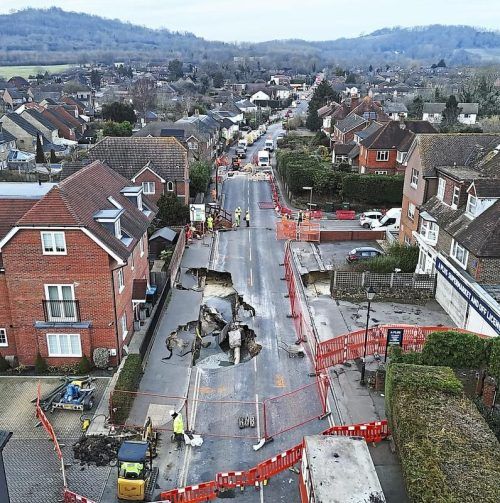 Godstone – Wenn mitten in der Nacht die Polizei klingelt: Nachdem eine Straße im beschaulichen britischen Godstone in Teilen eingesackt ist, haben die Anwohner eindrücklich die Evakuierung ihrer Häuser beschrieben. „Wir hörten ein heftiges Klopf