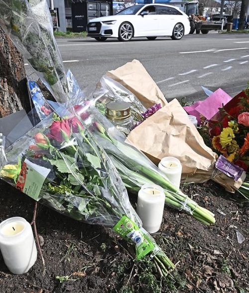 Blumen liegen an der Unfallstelle. © Weißbrod/dpa