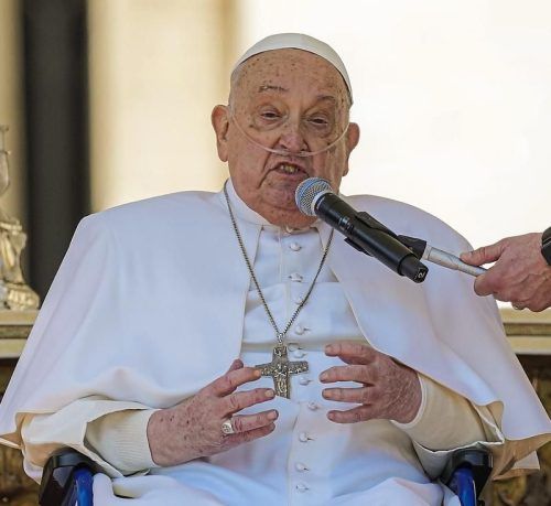 Papst Franziskus hat sich am Sonntagmittag überraschend auf dem Petersplatz gezeigt. Am Ende eines großen Gottesdienstes für Kranke und medizinisches Personal wurde er im Rollstuhl zum Altar vor der Fassade des