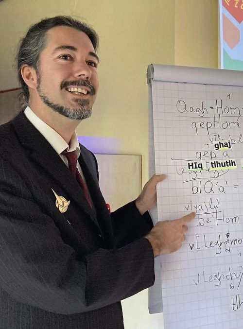 Lieven L. Litaer unterrichtet Klingonisch. © Reichert/dpa