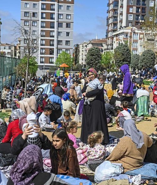 Die Menschen sind ins Freie geflohen. Danach gab es über 100 Nachbeben. © Akgul/AFP