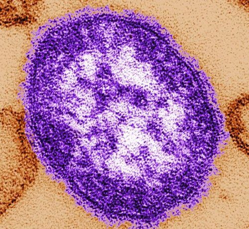 Die Miroskop-Aufnahmen zeigt Teile eines Masernvirus. © Goldsmith/dpa