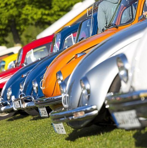 Hunderte VW-Käfer parkten auf dem Messegelände. © dpa