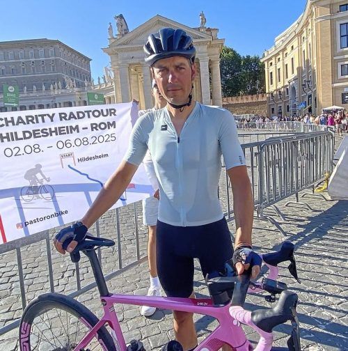 Rom – Pawel Nowak (39), katholischer „Rennrad-Pastor“ aus Bremen, ist am Dienstagabend auf dem Petersplatz angekommen –nach etwa 90 Stunden praktisch ohne Schlaf. Er war Samstagfrüh zu der ru