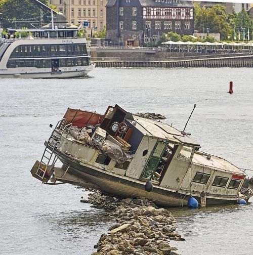 Ein Schwimmkran hat die bereits am 10. August auf einer Untiefe im Rhein festgefahrene Jacht beim hessischen Rüdesheim geborgen. Anschließend brachte er das in die Jahre gekommene Sportboot in den gegenüberliegenden Hafen von Bingen in Rheinland