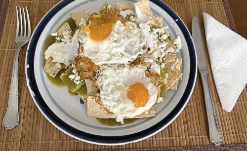Kater-Killer aus Mexiko: Gericht mit Chilaquiles aus Tortilla-Chips mit grüner Soße. © Cabrios/dpa