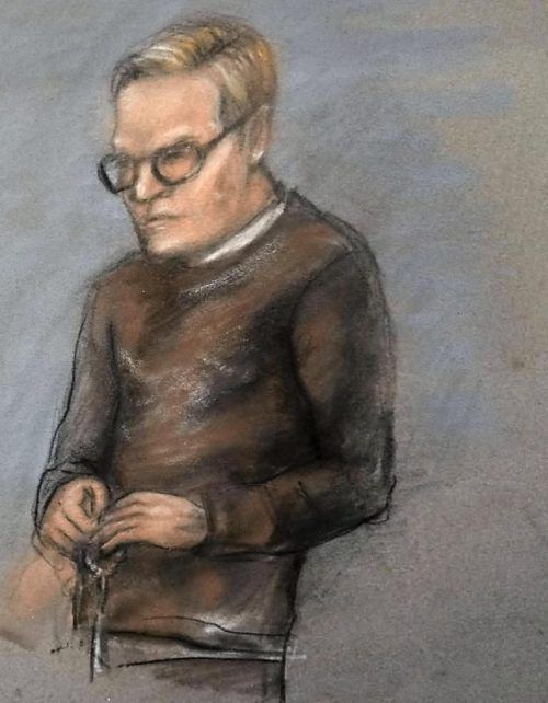 Eine Gerichtszeichnung von Marius Borg Hoiby, der nicht fotografiert werden darf. In der Hand der Rosenkranz. © Imago
