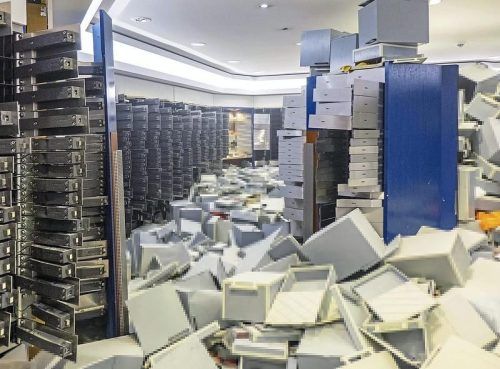 Nach dem spektakulären Einbruch in eine Gelsenkirchener Sparkasse hat die Polizei erstmals Fotos aus dem aufgebrochenen Tresorraum veröffentlicht. Die Bilder zeigen ein Chaos. Ende Dezember waren die Einbrecher über ein Parkhaus eingedrungen und hatten ein Loch in die Tresorraumwand gebohrt. Eine he