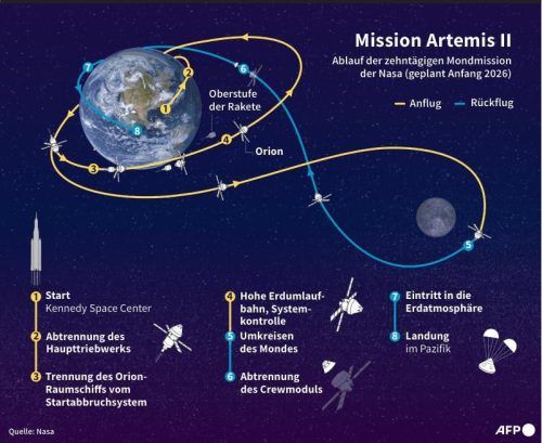 Washington – Mit der „Artemis 2“-Mission der US-Raumfahrtbehörde Nasa sollen erstmals seit mehr als einem halben Jahrhundert wieder Menschen in die Nähe