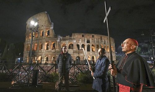 Karfreitag vor einem Jahr: Kardinal Reina ging mit dem Kreuz vom Kolosseum zum Forum Romanum. © Vatican Media
