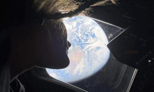 Blick auf die Erde: Astronautin Christina Koch betrachtet von der Raumkapsel aus unseren blauen Planeten. © Handout/AFP