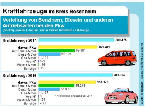 Rosenheim – Der Landkreis Rosenheim ist in puncto alternativer Antriebe beim Auto recht zurückhaltend: So meldete das Kraftfahrt-Bundesamt (KBA) in seiner Bestandsanalyse für 2017 exakt 161781 Pkw, von denen aber nur 194 reine Elektroautos sind. 61,69 Prozent der Pkw sind Benziner, 37,17 Prozent hab