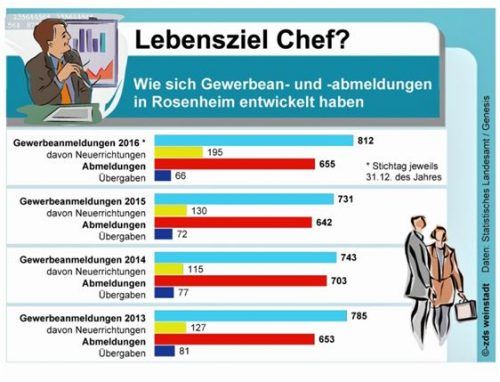Rosenheim – Wo in Deutschland versteckt sich der Gründergeist? Mit Blick auf die Gewerbeanmeldungen hatte Rosenheim bis Ende 2016 rund 131 Firmengründer und -gründerinnen je 10000 Einwohner.