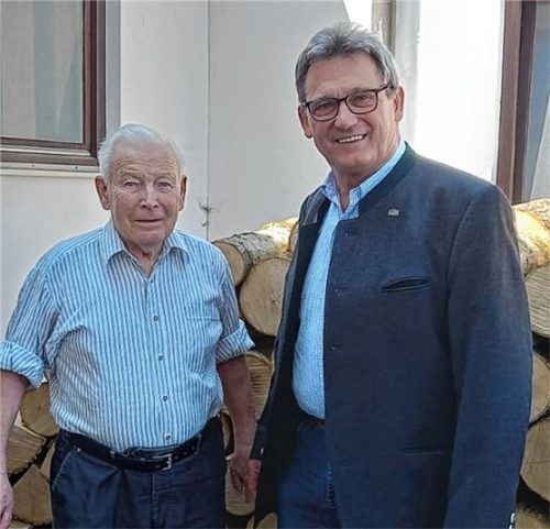 Zum 95. Geburtstag von Josef Huber (links) aus Brannenburg machte Obermeister Peter Moser seine Aufwartung. Beide kennen sich bereits seit 1971, als der amtierende Obermeister in der Schreinerei Huber seine Ausbildung begann. Der Dank gilt darüber hinaus der jahrzehntelangen Treue zur Schreiner-Innu