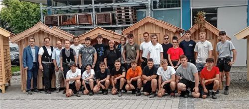 24 Auszubildende im Zimmererhandwerk aus den beiden Landkreisen Mühldorf und Altötting haben an der Berufsschule Altötting Hühnerhäuschen angefertigt. Im Zimmerhandwerk wird das erste Ausbildungsjahr als Berufsgrundschuljahr absolviert. Die engagierten Azubis, drei Mädels und 21 Burschen, erhielten