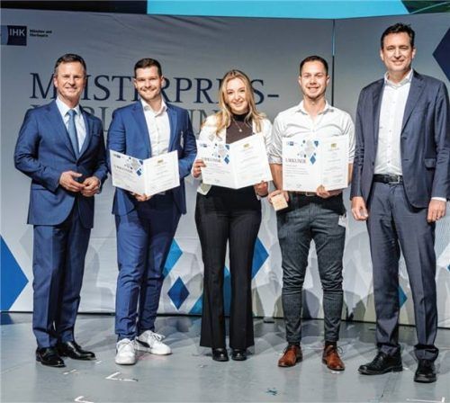 Die IHK für München und Oberbayern hat 121 herausragenden Absolventen der IHK-Fortbildungen den Meisterpreis der Bayerischen Staatsregierung verliehen, darunter drei aus der Region Rosenheim. Das Bild zeigt (von links): IHK-Hauptgeschäftsführer Manfred Gößl, Christian Freiberger (IT-Projektleiter),