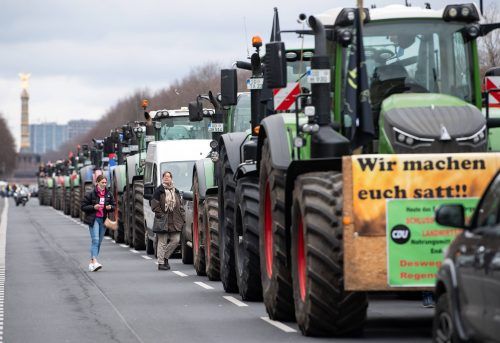 Berlin – Mehrere hundert Bauern haben am Dienstag in Berlin gegen Regierungspläne zum Insektenschutz protestiert. Mit ihren Traktoren zogen sie durch das Regierungsviertel und vor das Brandenburger Tor. Auf Transparenten hieß es „Ideologie macht nicht satt“ und „Bauern werden ruiniert, Essen wird im